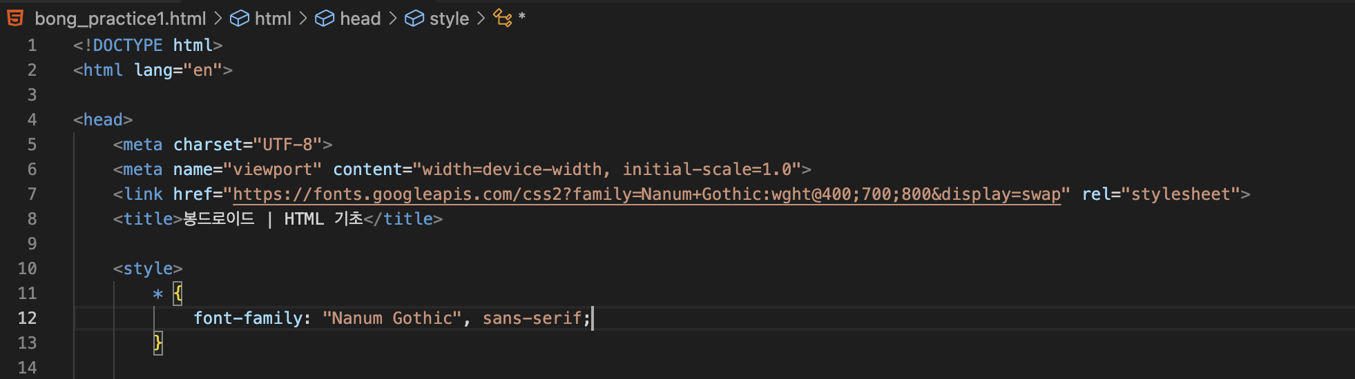 넣은 이미지는 다음과 같다. 7번째 줄과 11~13번째 줄에 들어가 있다. 폰트의 전체 적용을 위해 <style>에 클래스를 지정하는게 아닌, * { }을 써서 전체 사이트에 적용되도록 했다.